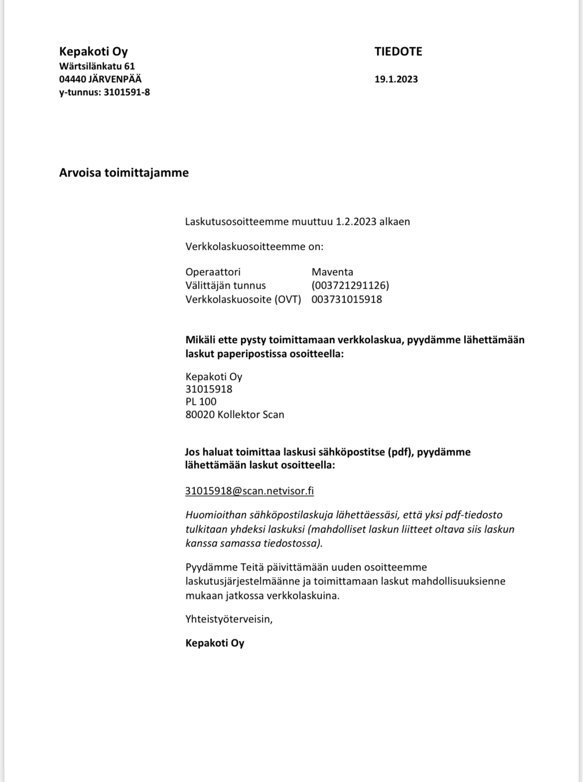 Muut yhteystiedot
